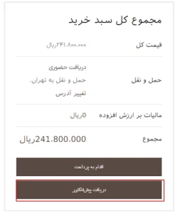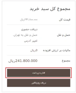 - پس از تأیید پیشفاکتور، وارد صفحهی تسویهحساب شوید.