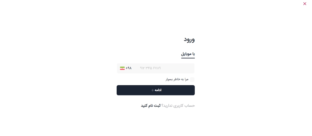 - در صفحهی بازشده، شماره تلفن همراه خود را وارد کنید.